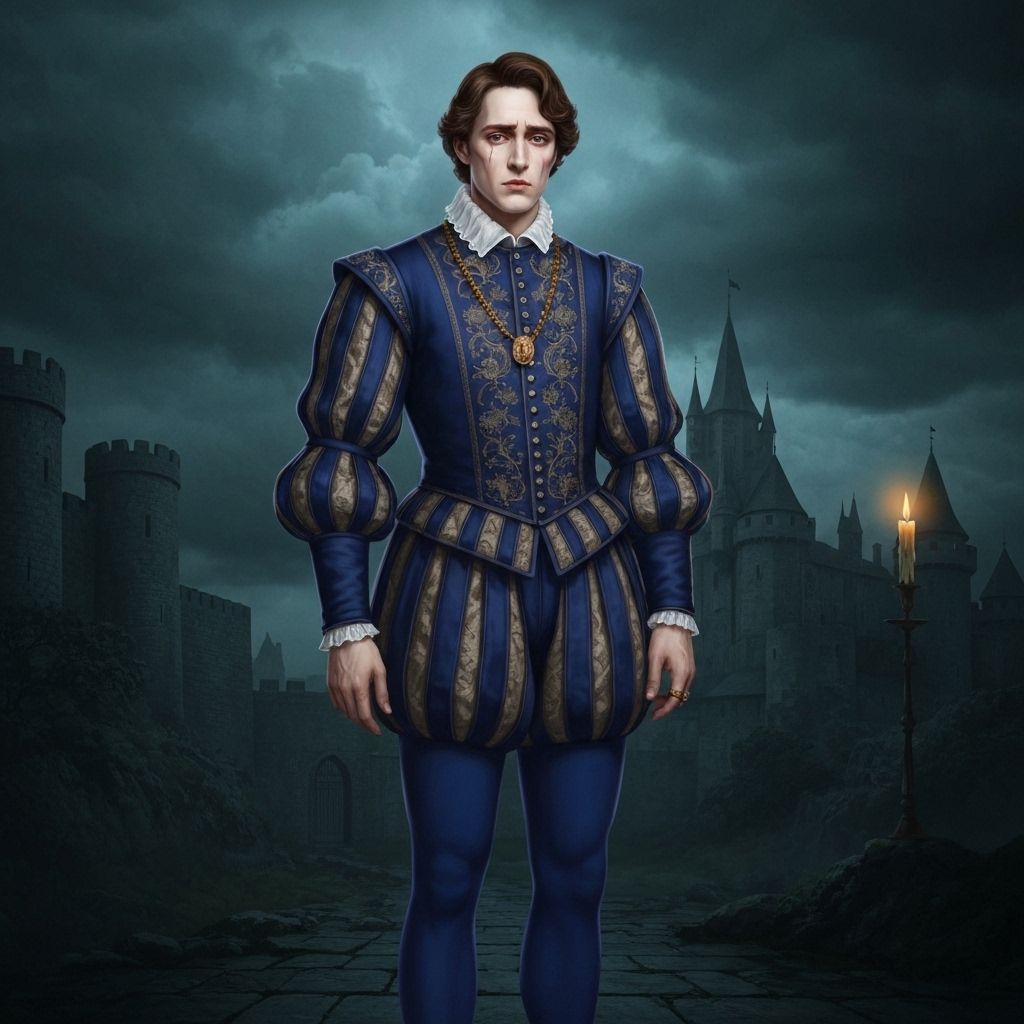 The melancholy prince, torn between duty and doubt, seeking revenge for his father's murder.